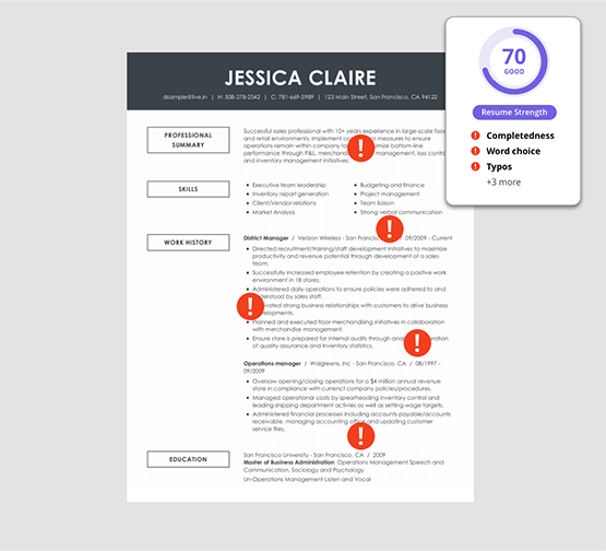 Many employers will reject a resume with even one typo, so you'll want to make sure yours is error-free. Typos include any errors in words, numbers and extra spaces.